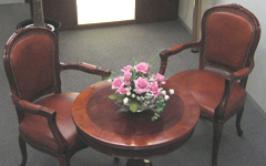 非常に美しい家具を揃えた応接室です。はじめて入室したときには、誰もが驚きます(面接もここで行われますのでぜひご体験ください)。